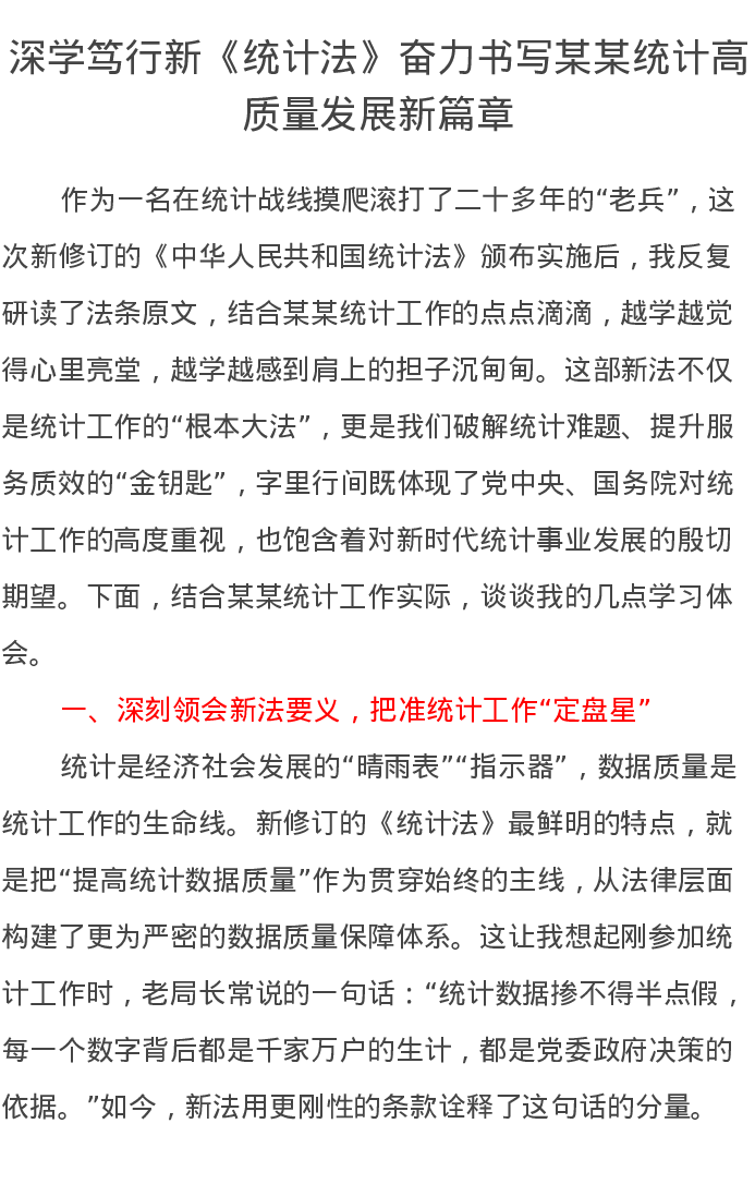 深学笃行新《统计法》奋力书写某某统计高质量发展新篇章