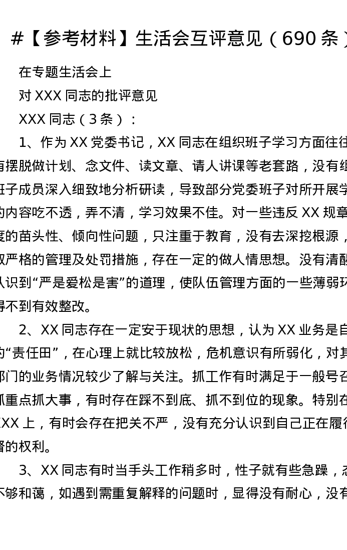 【参考材料】2025年xxxxx互评意见(690条)(五个带头)