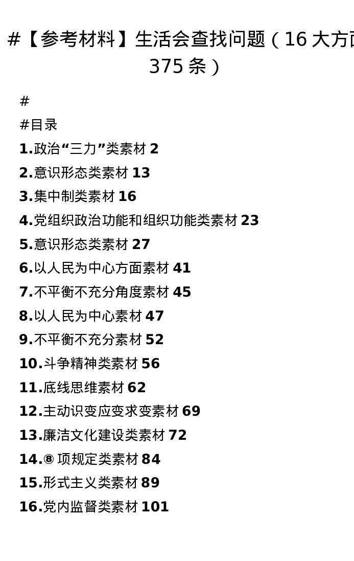【参考材料】生活会查找问题(16大方面375条)