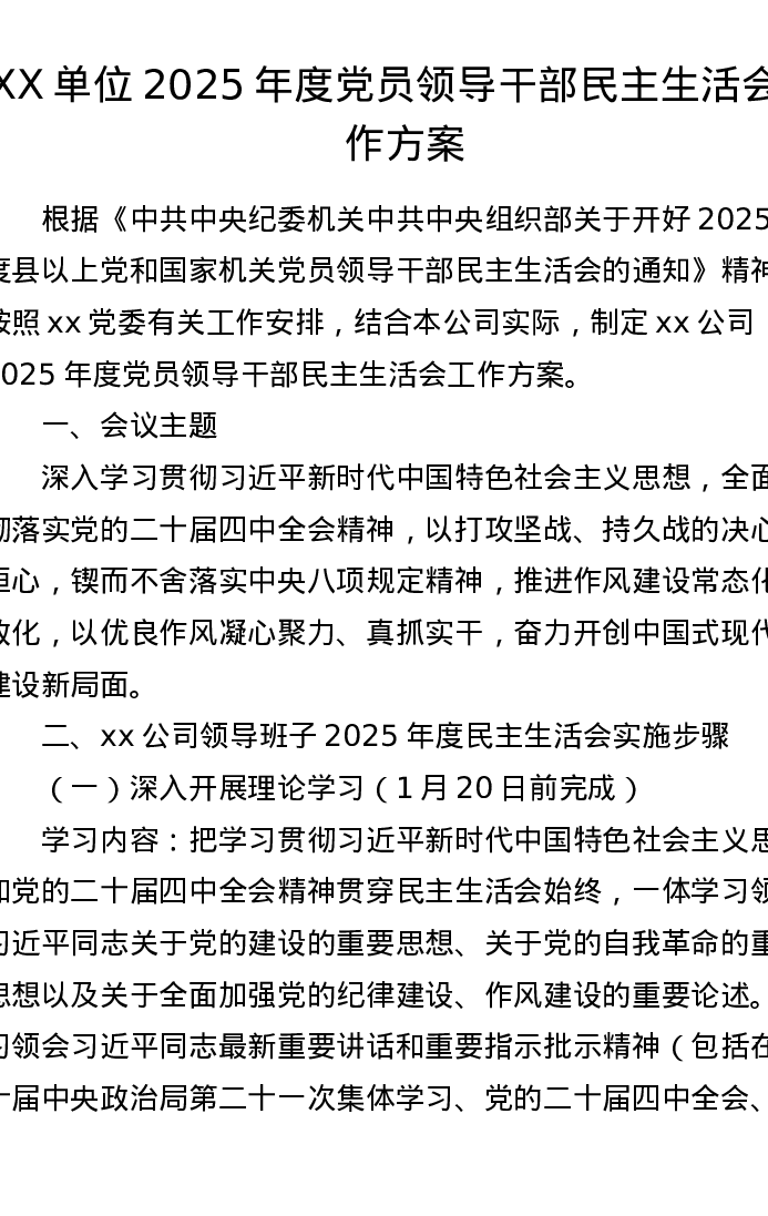 2025年度党员领导干部xxxxx工作方案(五个带头)