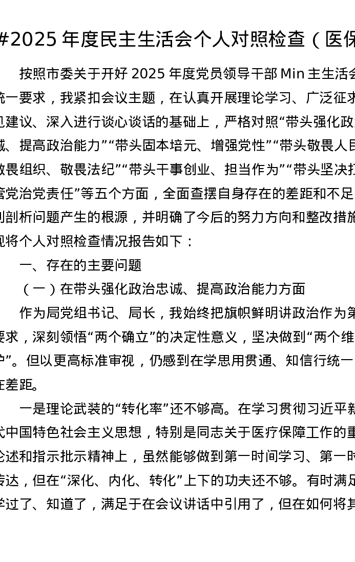2025年度五个带头xxxxx个人对照检查(医保)