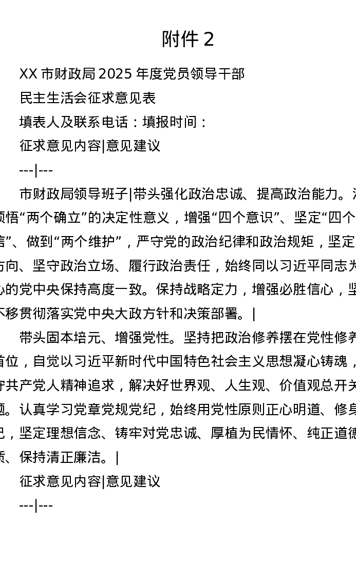 XX局2025年度党员领导干部xxxxx征求意见表(五个带头)