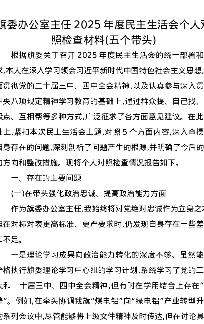 旗委办公室主任2025年度xxxxx个人对照检查材料(五个带头)