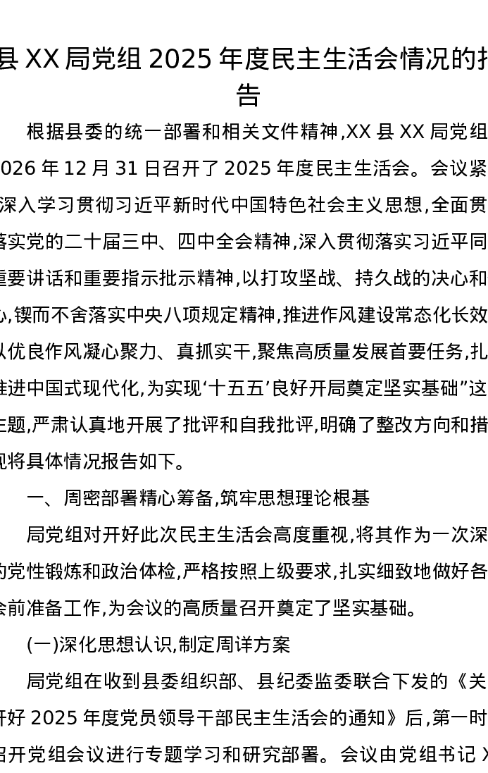 县XX局党组2025年度xxxxx情况的报告(五个带头)