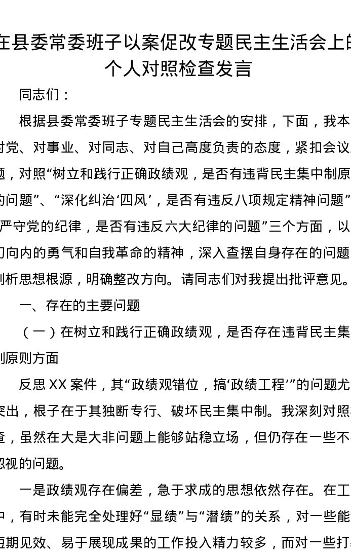 在县委常委班子以案促改专题xxxxx上的个人对照检查发言