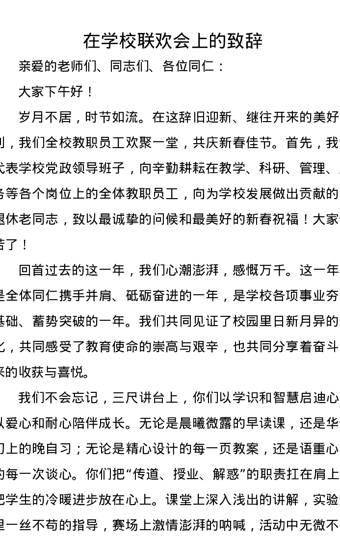 在学校联欢会上的致辞