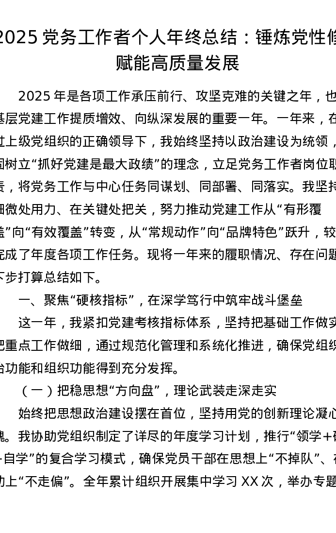 2025党务工作者个人年终总结:锤炼党性修养 赋能高质量发展