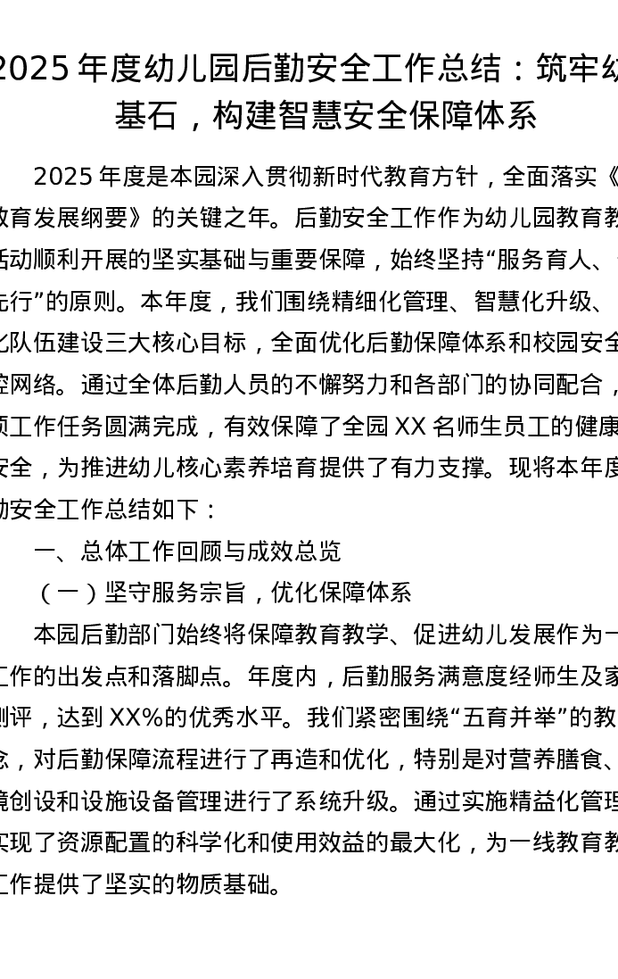 2025年度幼儿园后勤安全工作总结:筑牢幼教基石,构建智慧安全保障体系