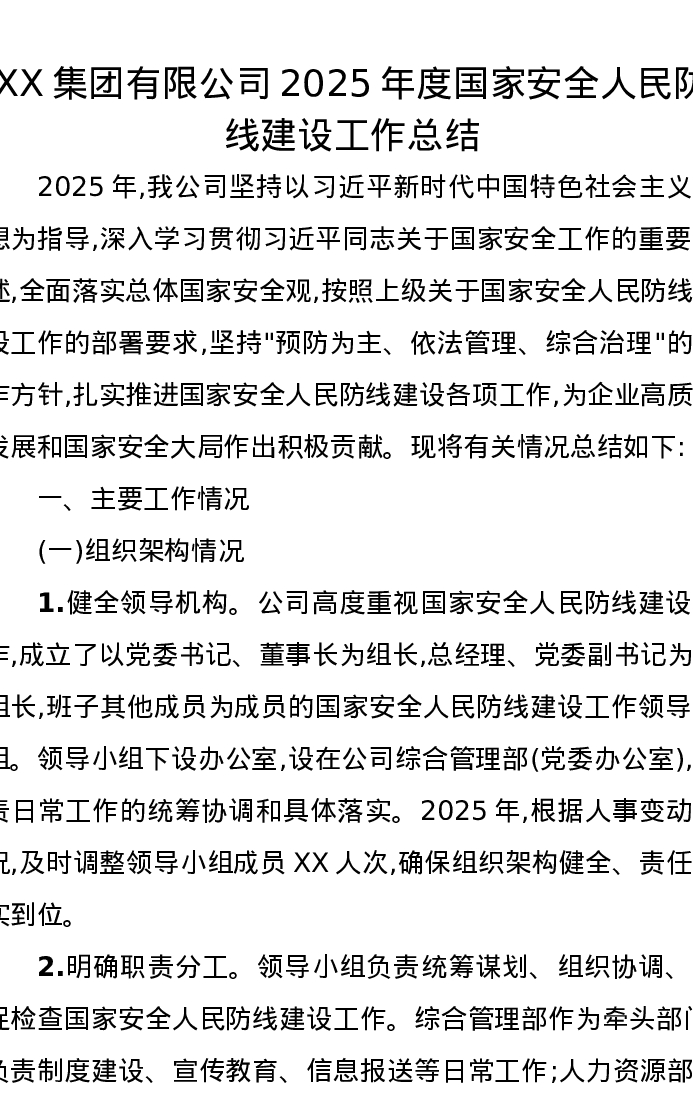 XX集团有限公司2025年度国家安全人民防线建设工作总结