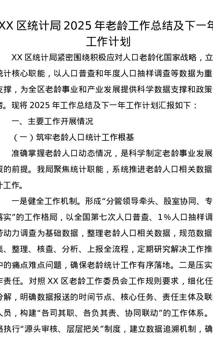 XX区统计局2025年老龄工作总结及下一年工作计划
