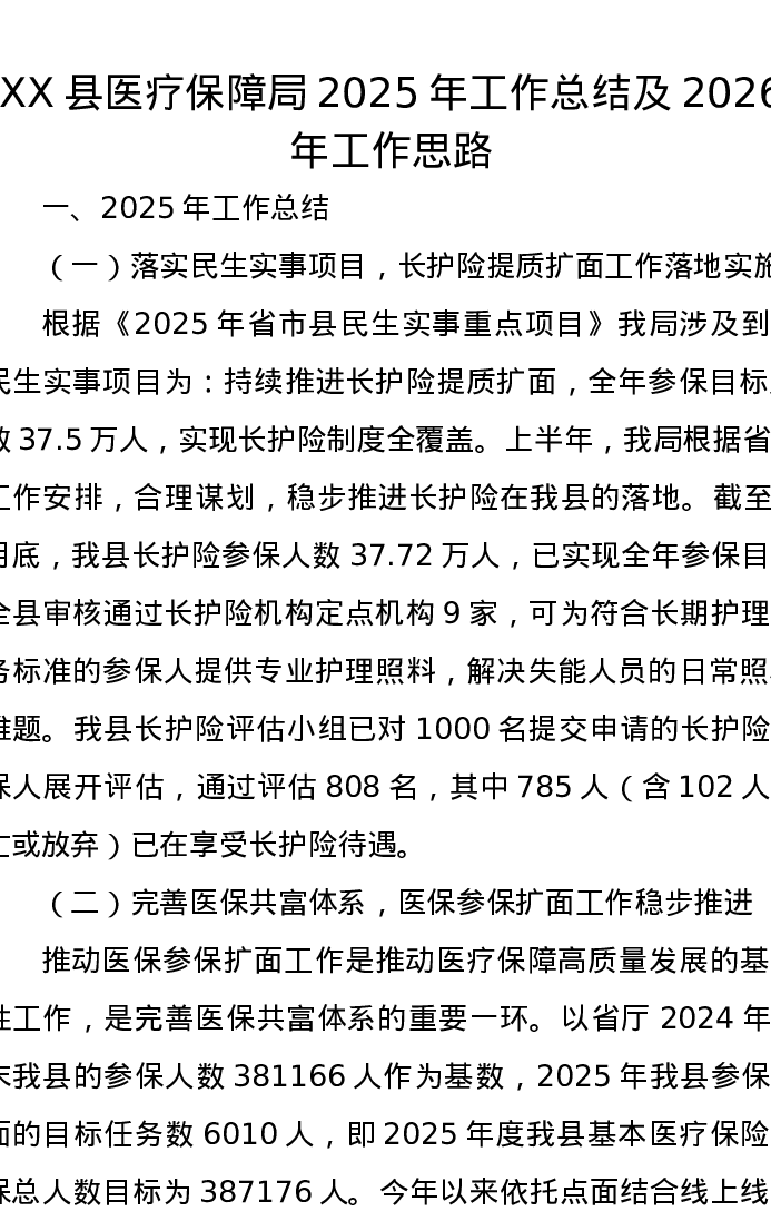 XX县医疗保障局2025年工作总结及2026年工作思路
