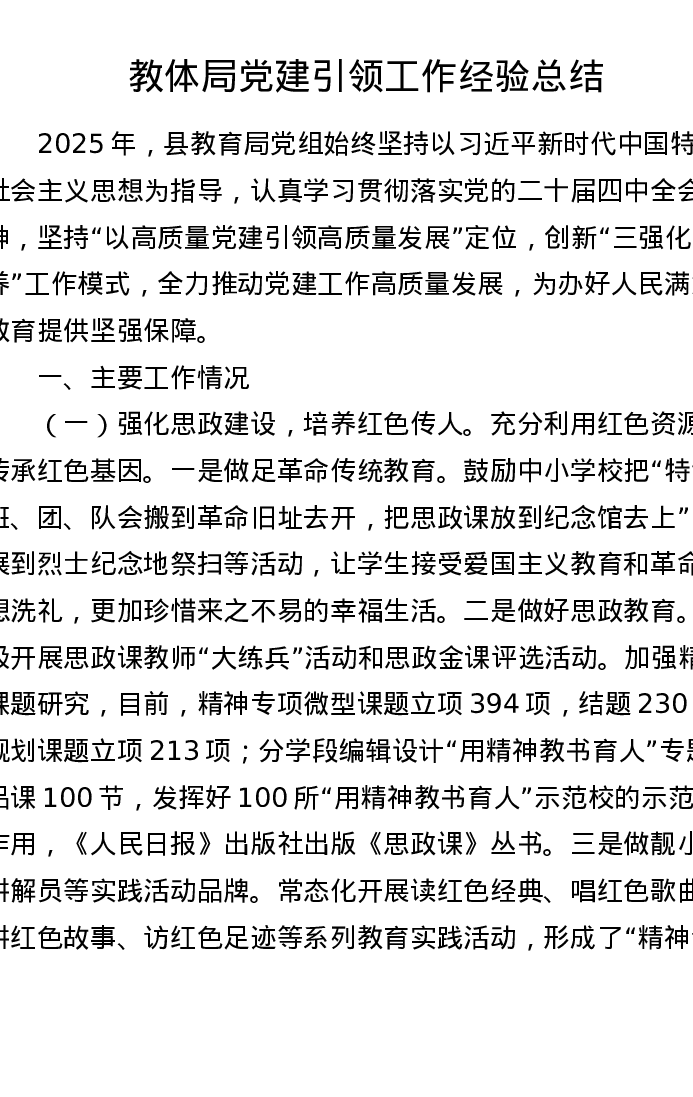 教体局党建引领工作经验总结