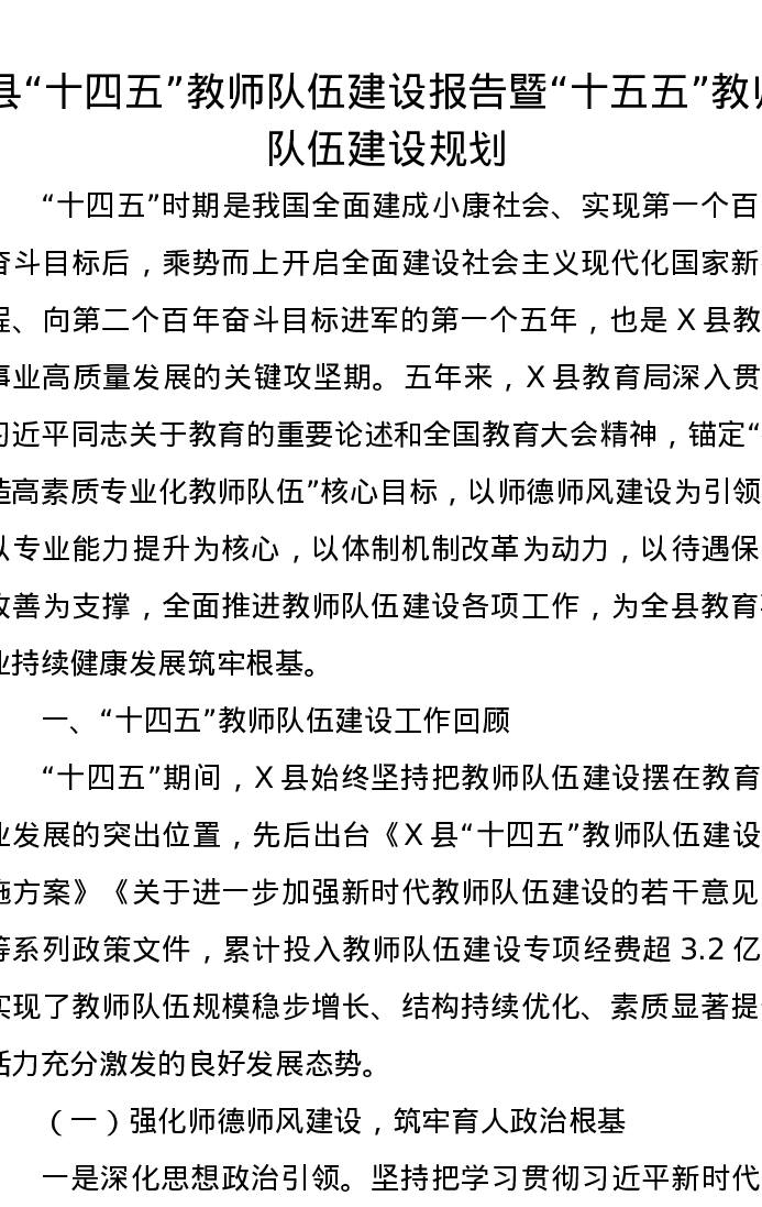 县十四五教师队伍建设报告暨十五五教师队伍建设规划