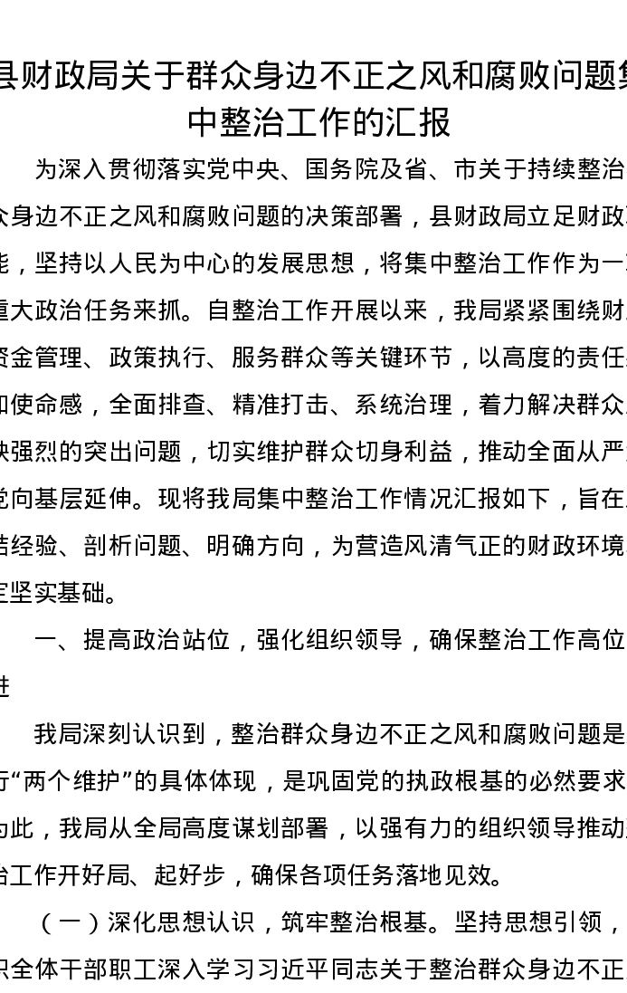 县财政局关于群众身边不正之风和腐败问题集中整治工作的汇报