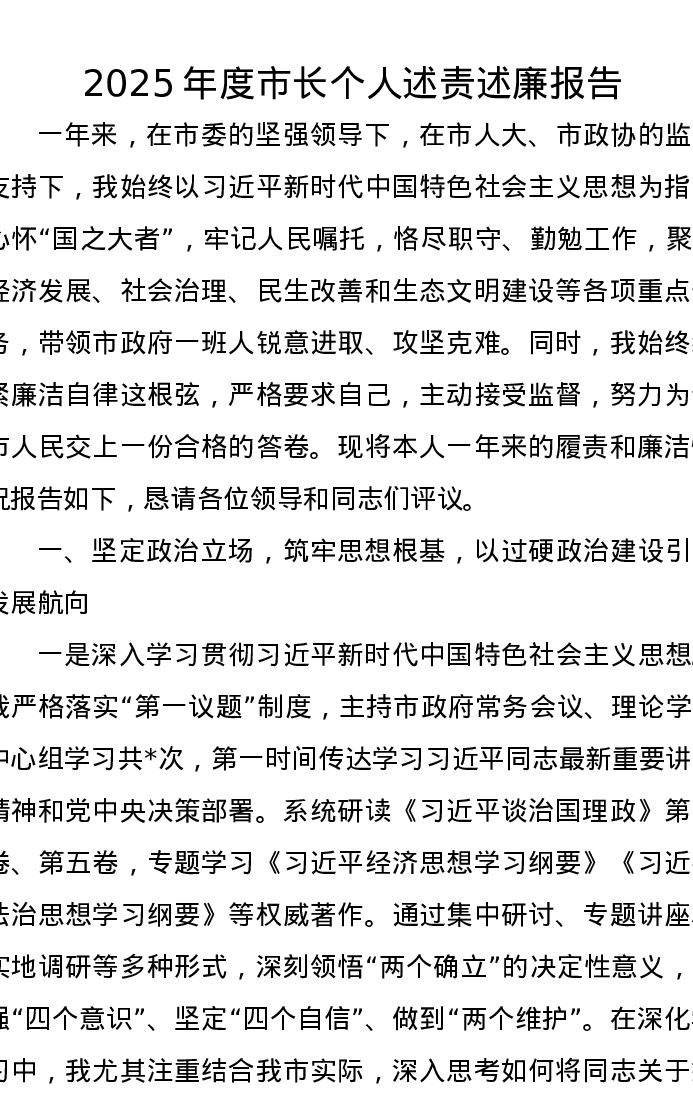 2025年度市长个人述责述廉报告
