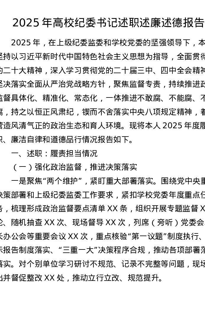 2025年高校纪委书记述职述廉述德报告(6100字)