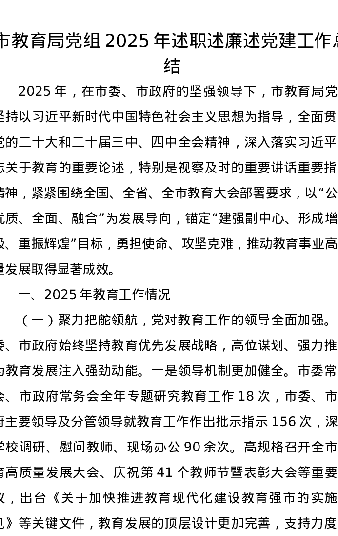 市教育局党组2025年述职述廉述党建工作总结
