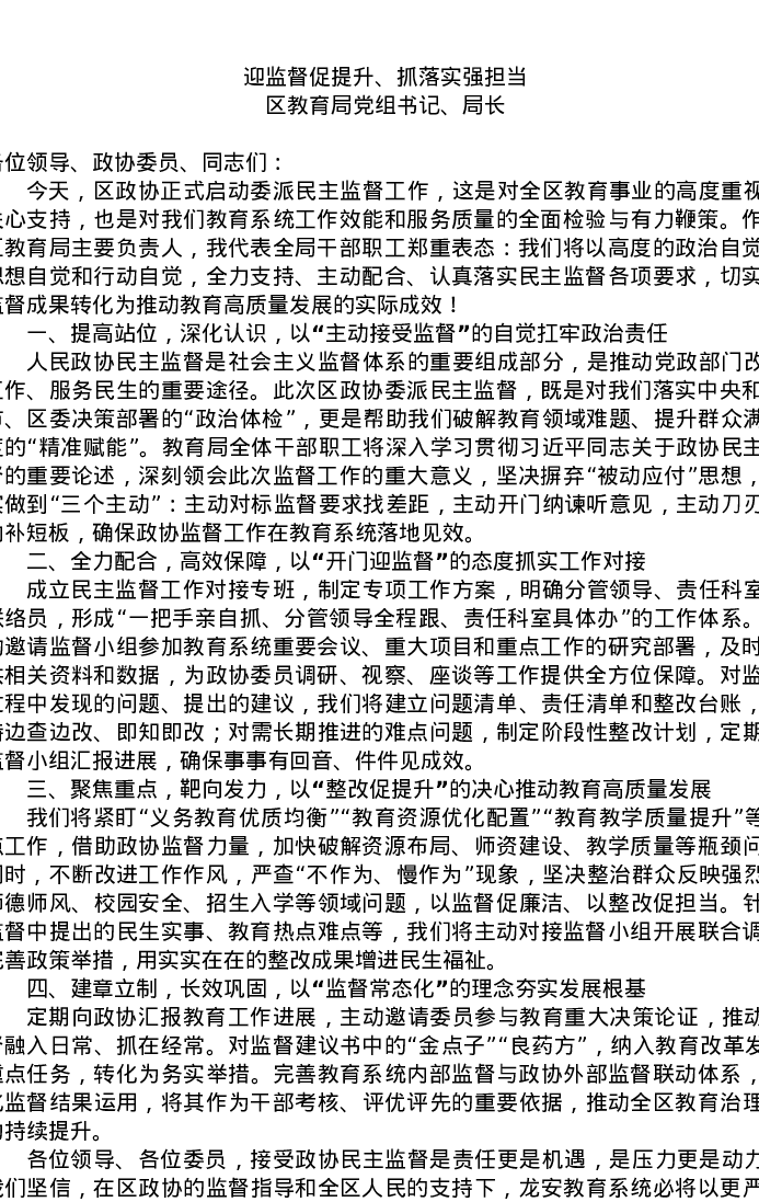 在区政协委派民主监督工作推进会上的发言汇编4篇