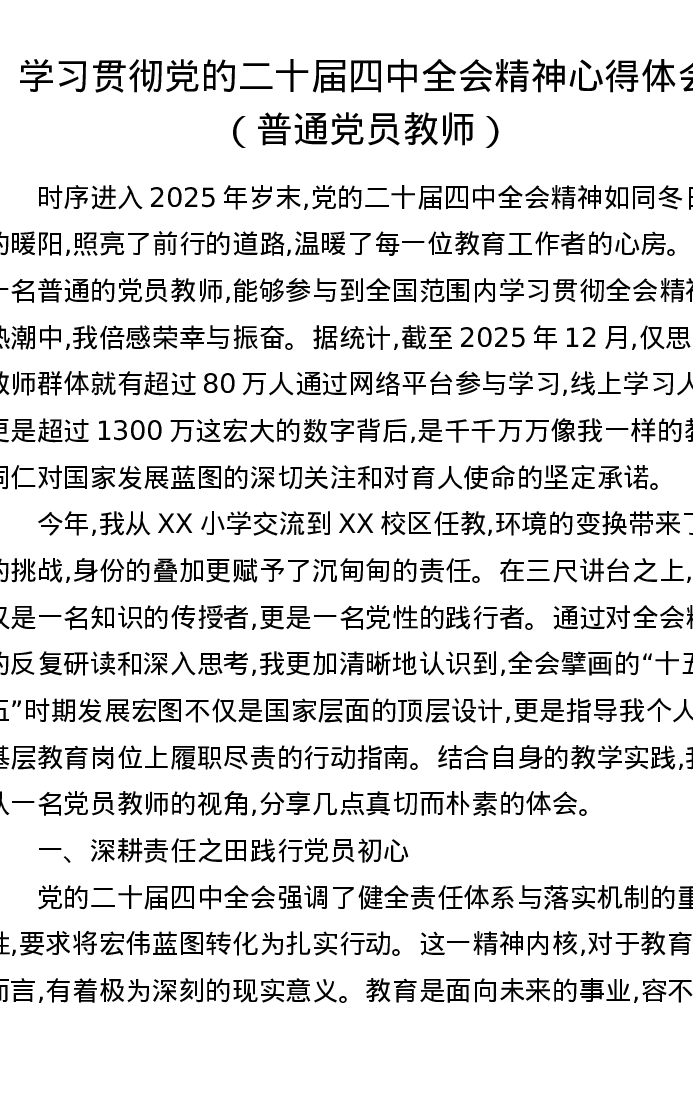 学习贯彻党的二十届四中全会精神心得体会(普通党员教师)