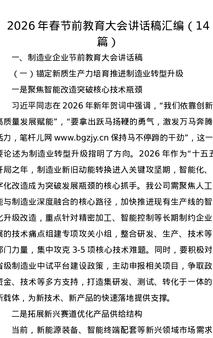 2026 年春节前教育大会讲话稿汇编(14篇)