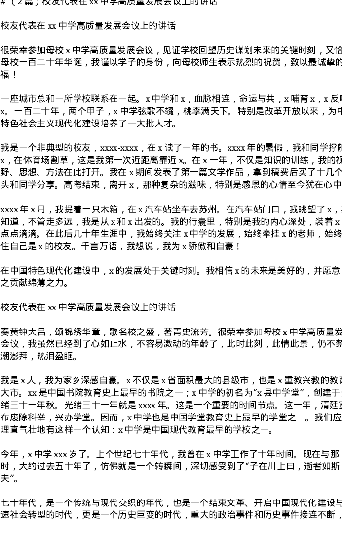 汇编:校友代表在xx中学高质量发展会议上的讲话2篇