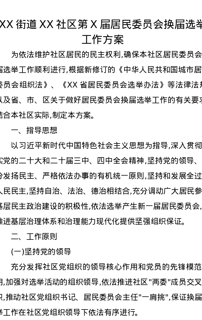 XX街道XX社区第X届居民委员会换届选举工作方案