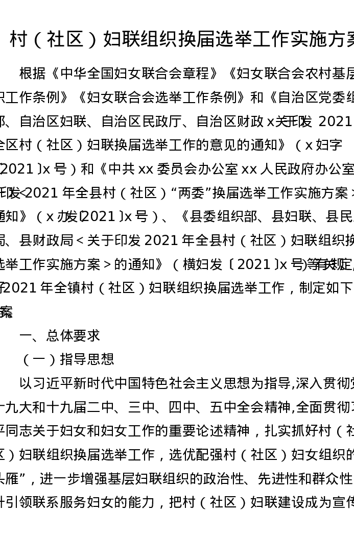 村(社区)妇联组织换届选举工作实施方案
