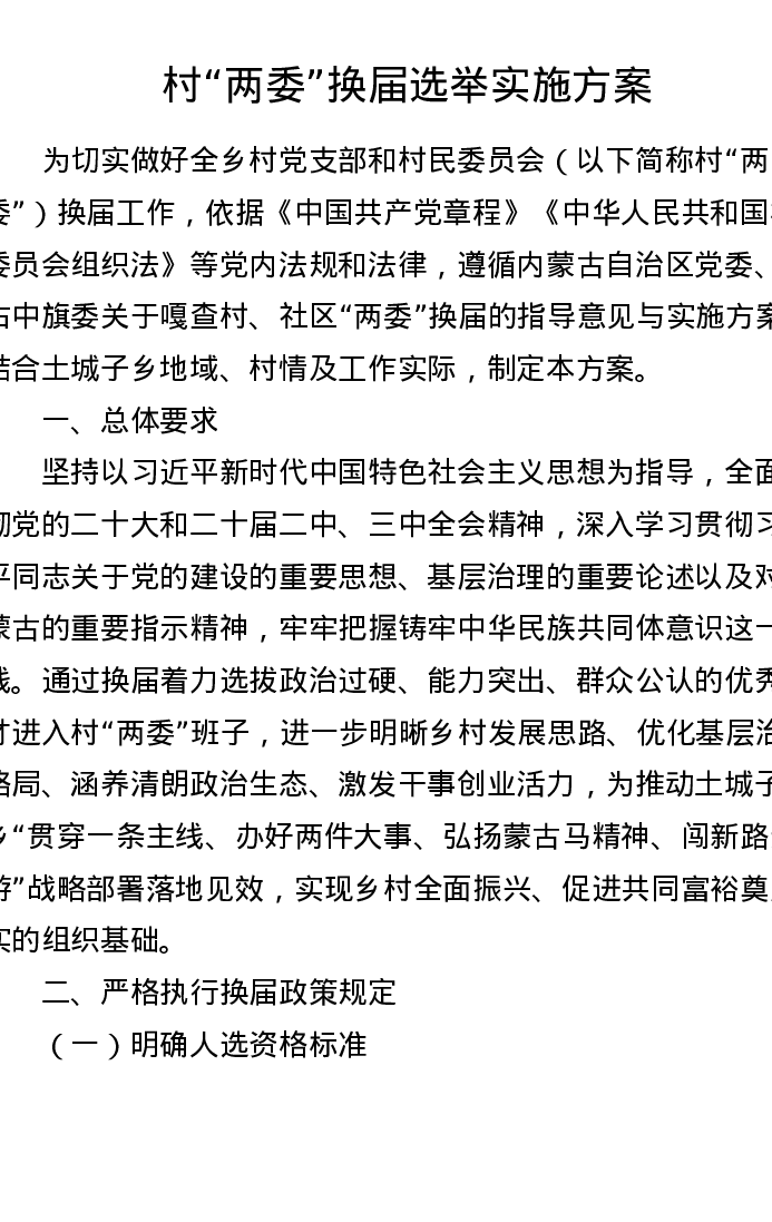 村两委换届选举实施方案