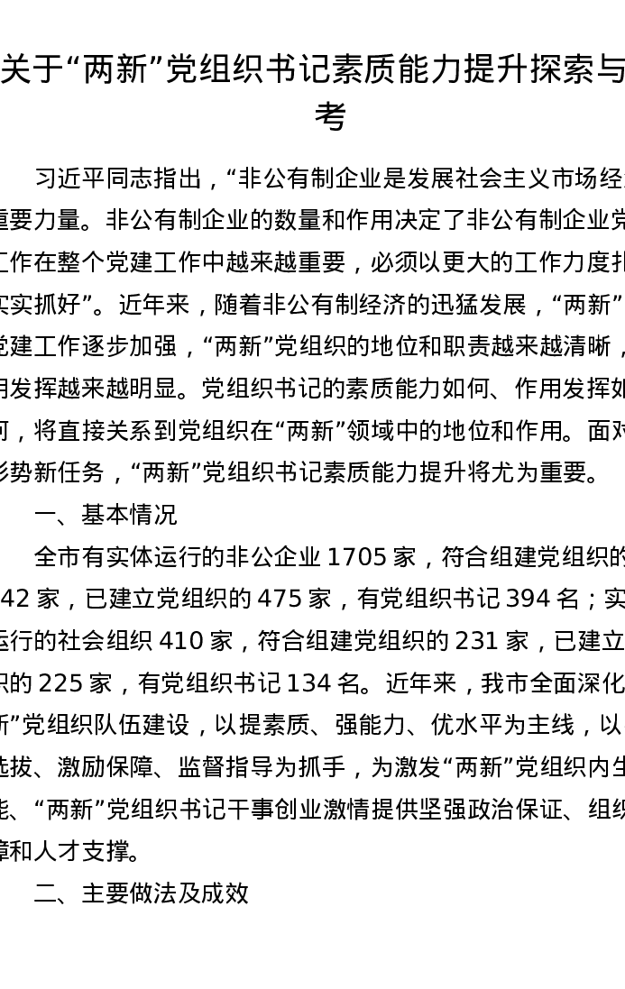 调研报告:关于两新党组织书记素质能力提升探索与思考