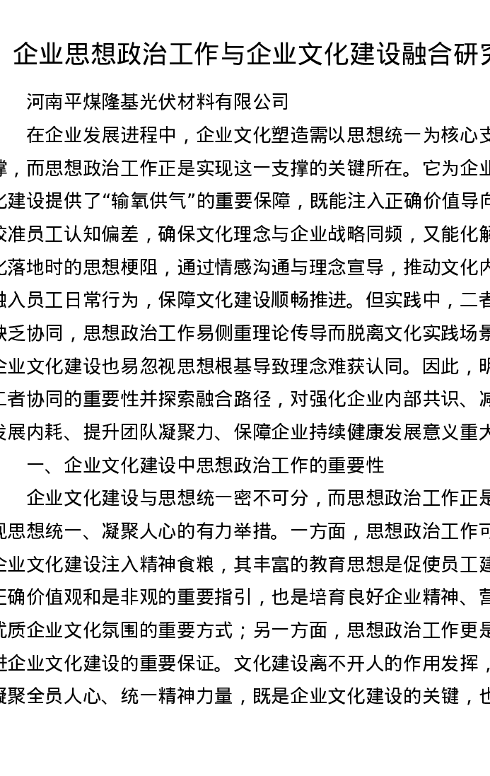 调研报告:企业思想政治工作与企业文化建设融合研究
