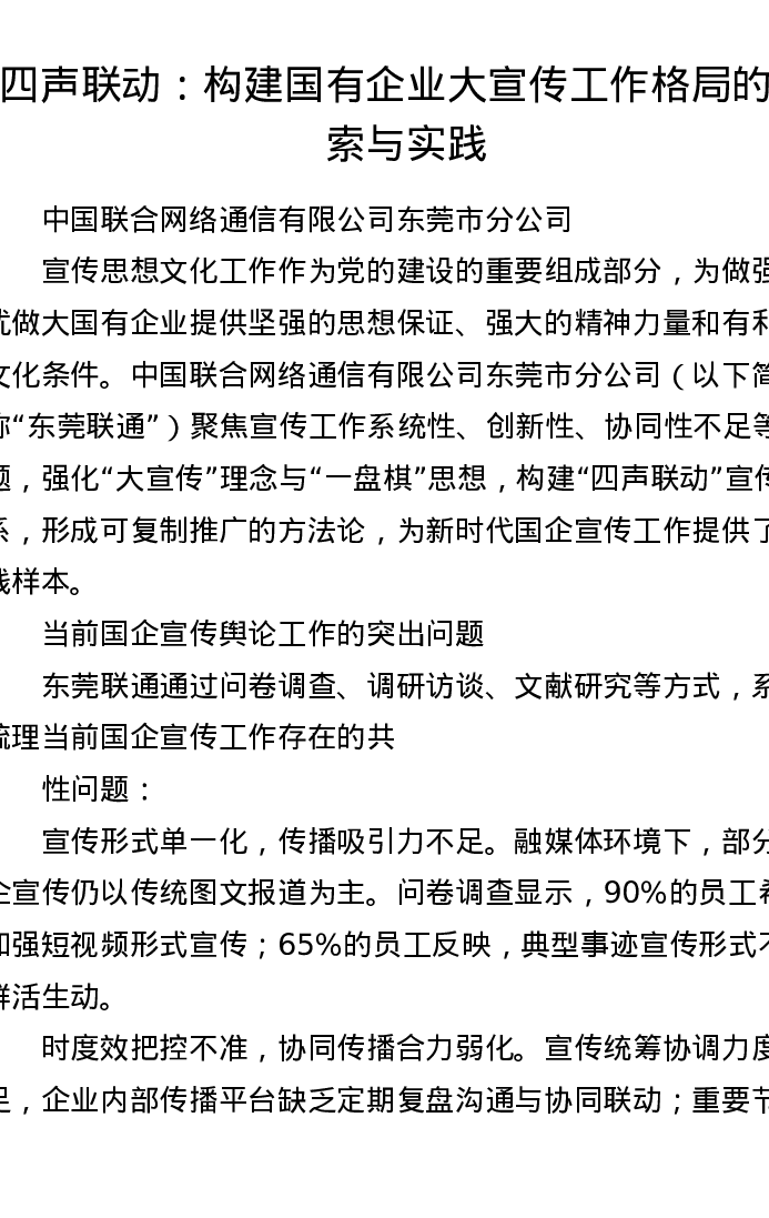 调研报告:四声联动:构建国有企业大宣传工作格局的探索与实践