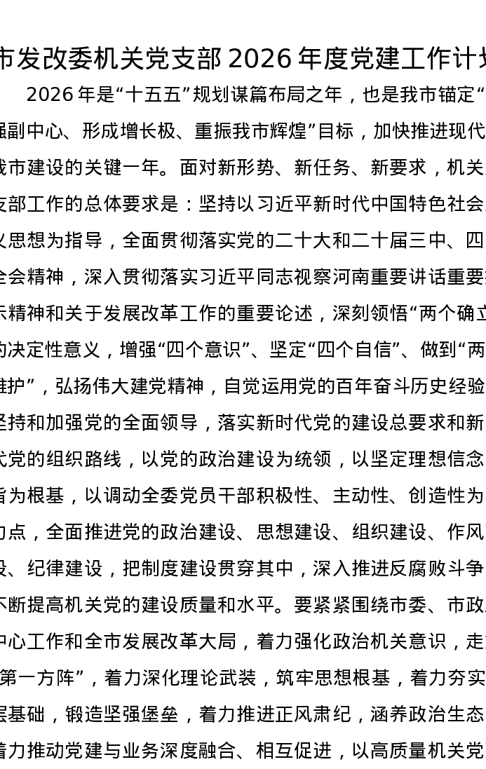 市发改委机关党支部2026年度党建工作计划