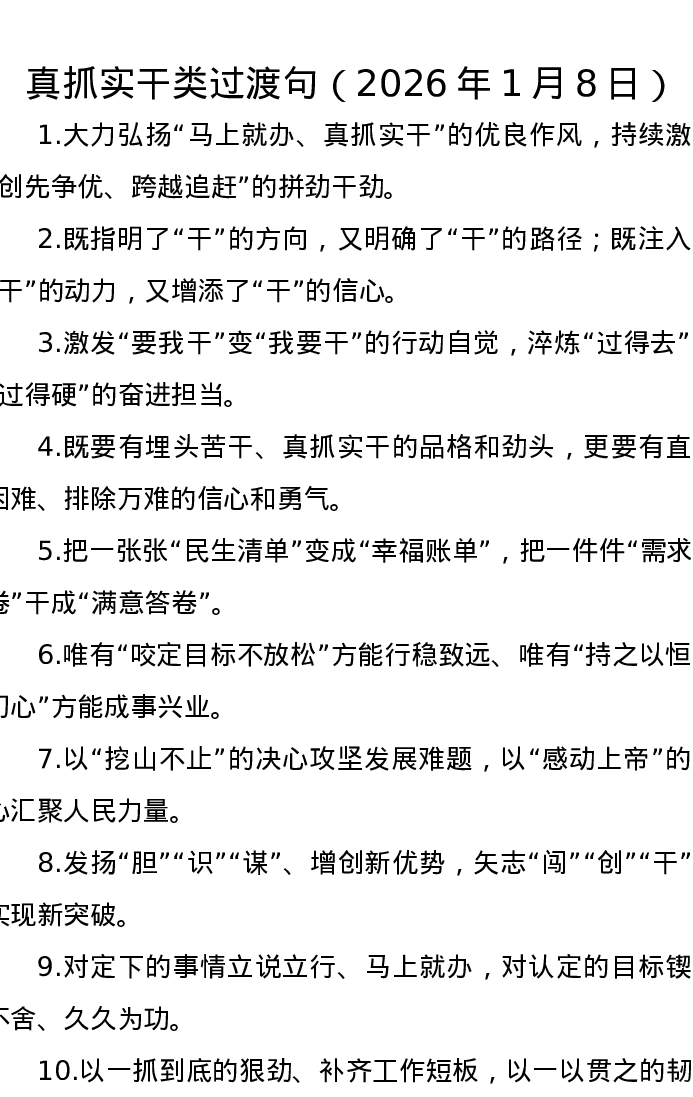 真抓实干类过渡句(2026年1月8日)