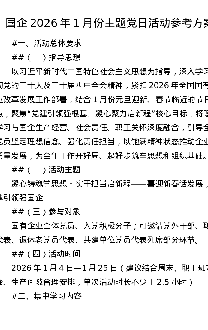 国企2026年1月份主题党日活动参考方案