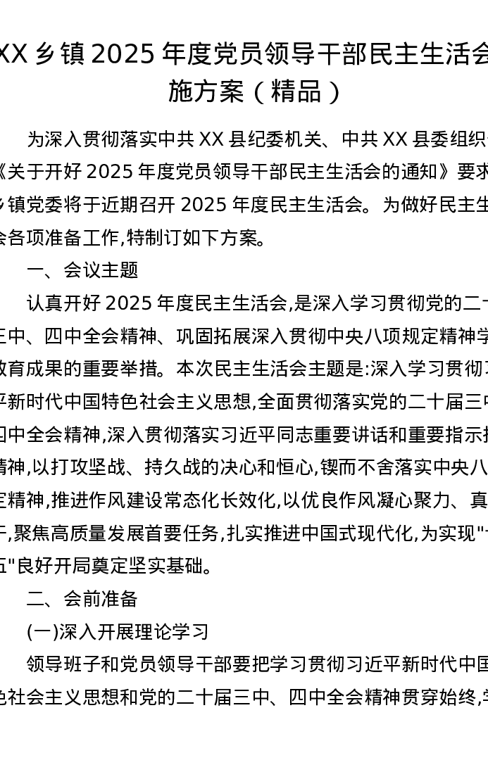 XX乡镇2025年度党员领导干部xxxxx实施方案(五个带头)