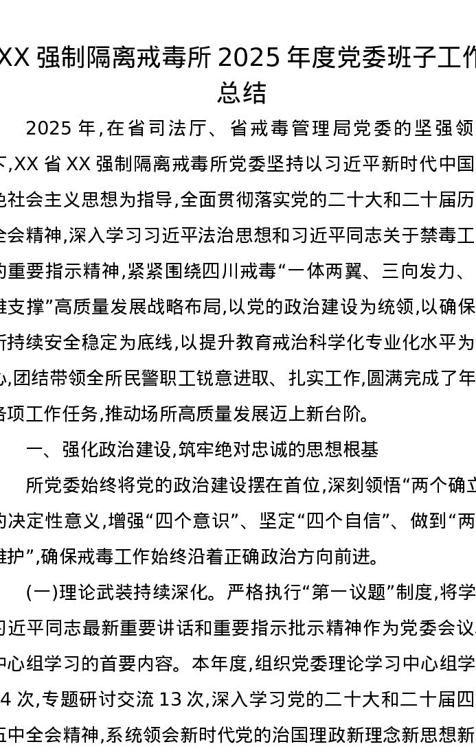 XX强制隔离戒毒所2025年度党委班子工作总结