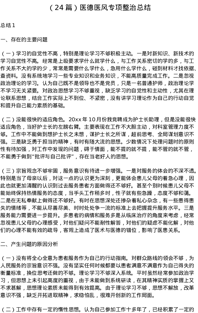 汇编:医德医风专项整治总结24篇