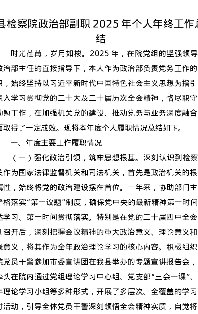 县检察院政治部副职2025年个人年终工作总结