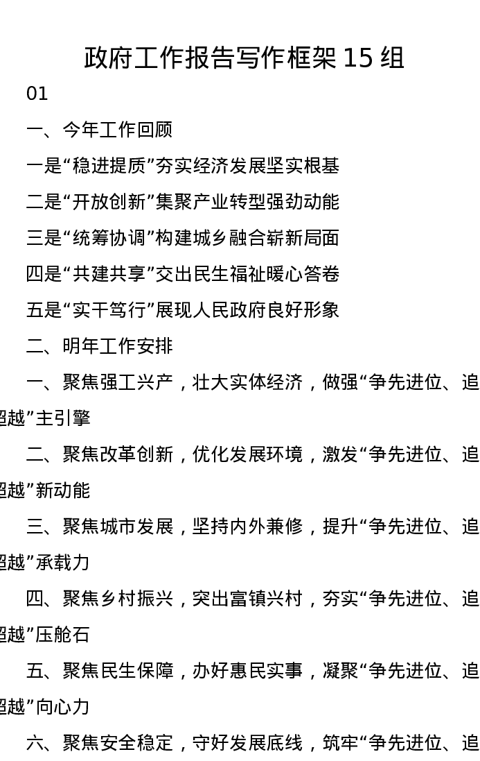 政府工作报告写作框架15组