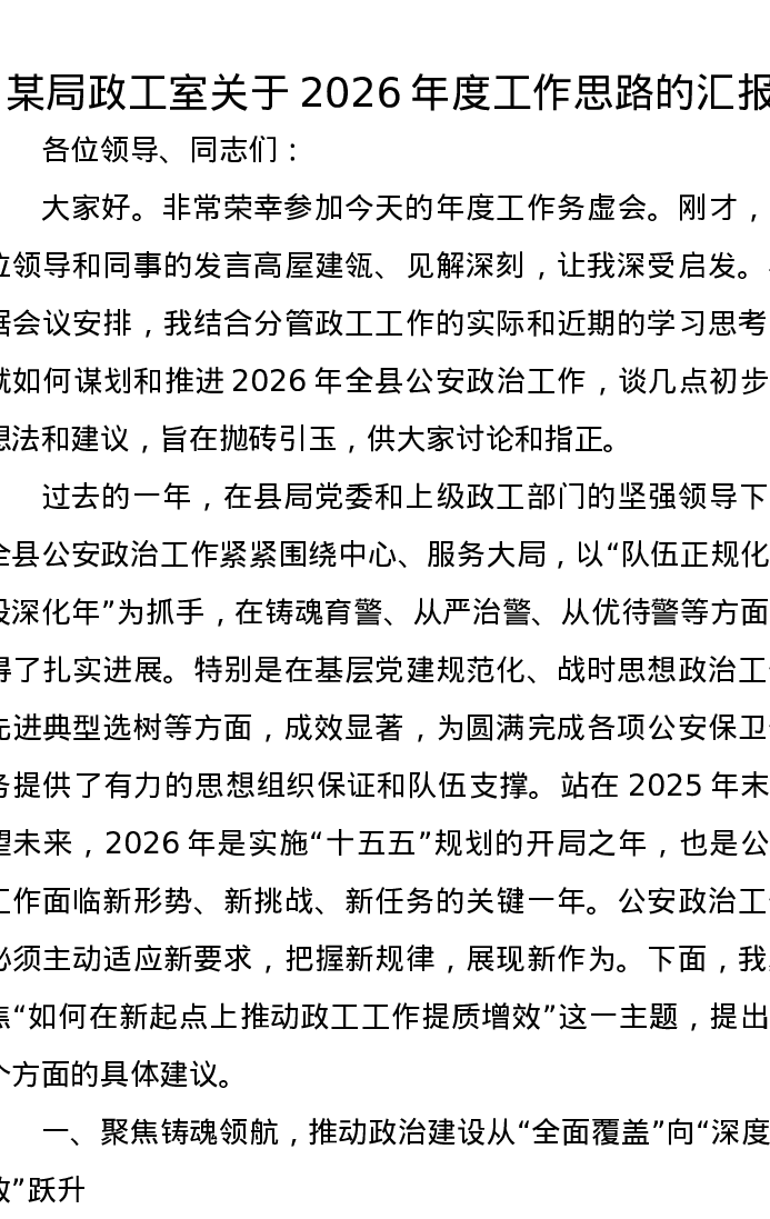 某局政工室关于2026年度工作思路的汇报