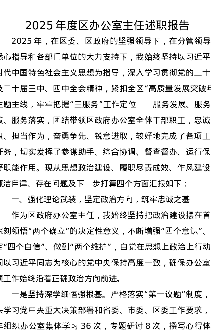 2025年度区办公室主任述职报告