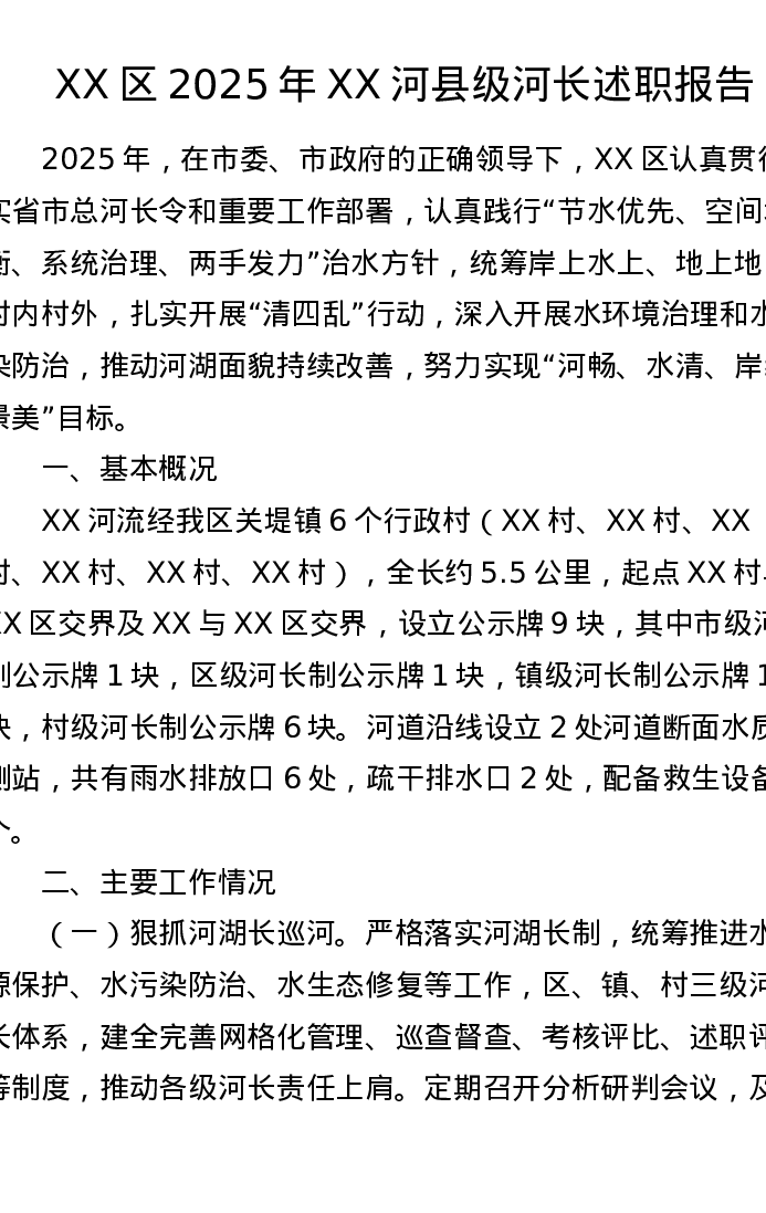 XX区2025年XX河县级河长述职报告