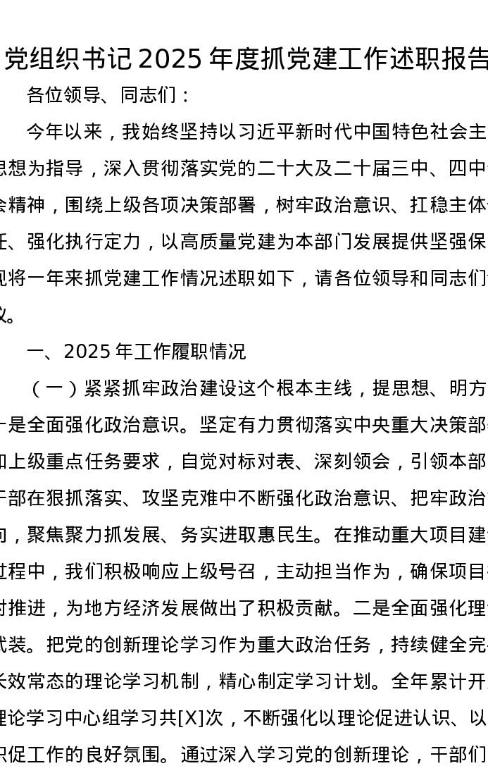 党组织书记2025年度抓党建工作述职报告