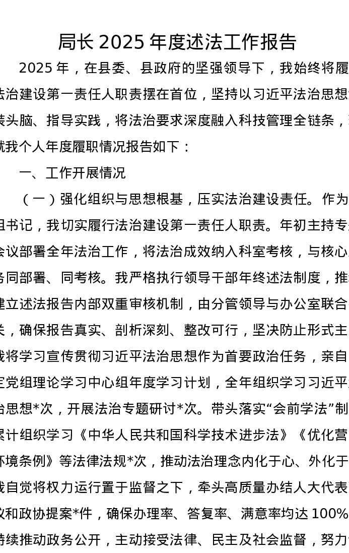 局长2025年度述法工作报告