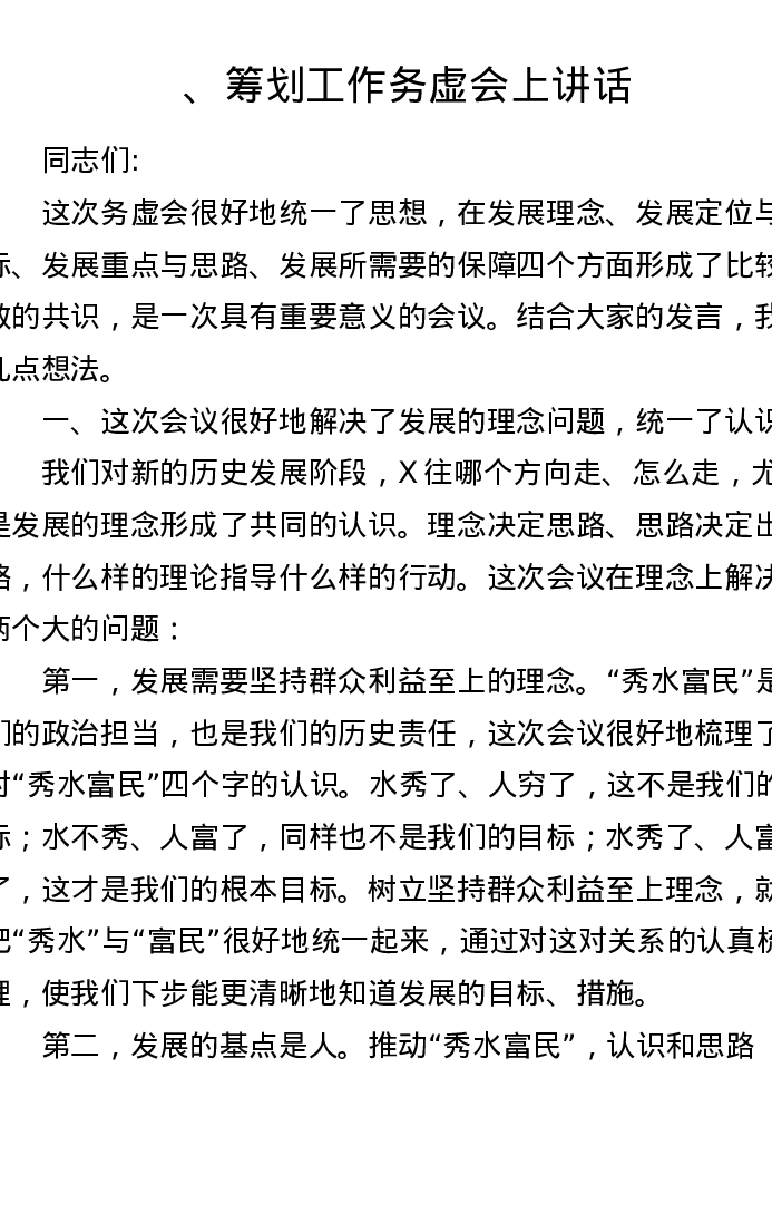 筹划工作务虚会讲话