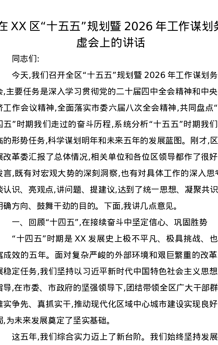 在XX区十五五规划暨2026年工作谋划务虚会上的讲话