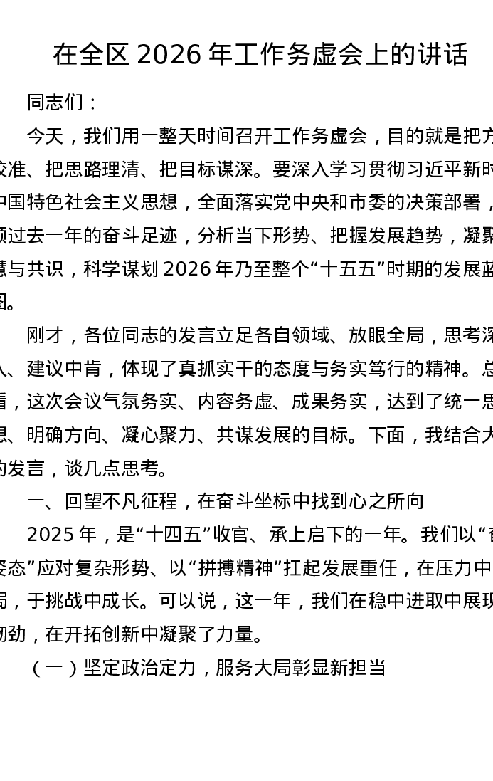 在全区2026年工作务虚会上的讲话(3243字)