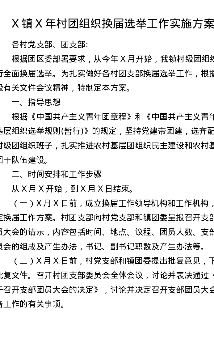 X镇X年村团组织换届选举工作实施方案