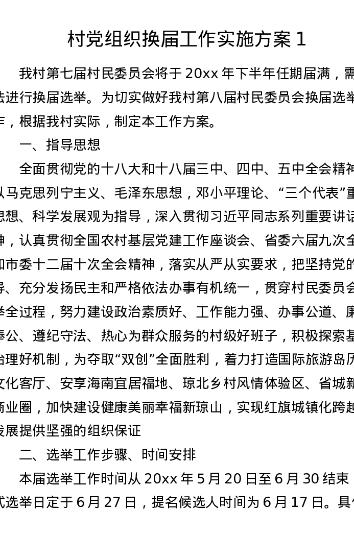 村党组织换届工作实施方案1