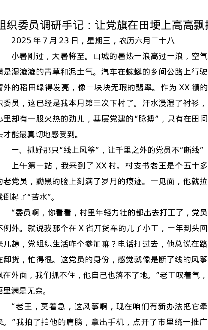 组织委员调研手记:让党旗在田埂上高高飘扬